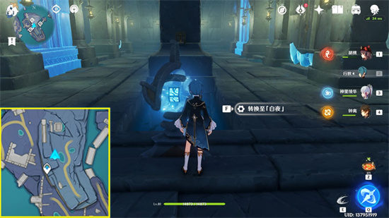 (1)按任务提示进入迷宫,找到下图位置(面朝日夜回轮,背对华丽宝箱,地图朝正北方向),先将日夜回轮转到至“白夜”(白天)。