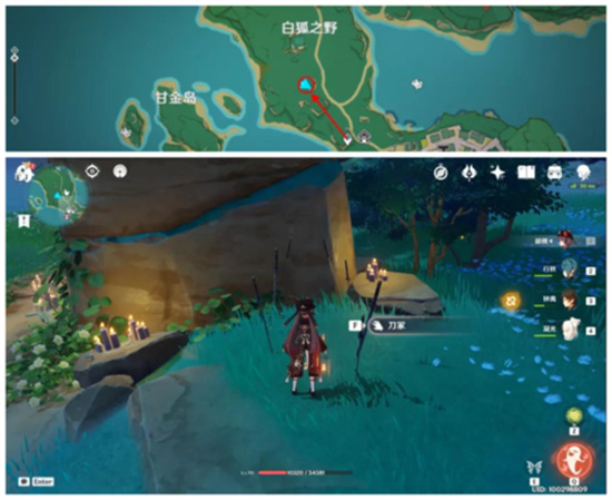 3、拾取后来到稻妻-白狐之野的刀冢处(下图位置)。