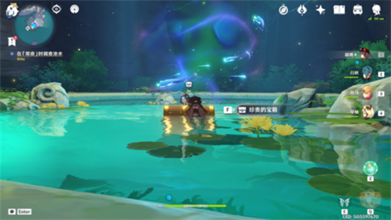 此处有三只深海龙蜥·原种(一大两小),击败之后可以获得一个珍贵的宝箱,然后出现一个冥鱼群,我们飞进它们内部往上升(注意别飞出去了!)