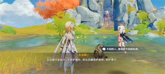 剧情里派蒙告诉了吉法师自己与旅行者在璃月的冒险经历,其中说到了访问仙人时,亲眼看到琥珀可以把人“吞”掉,说到这里,吉法师非常好奇,以为琥珀吞人跟五百藏是一样的,一番解释后吉法师应该明白了