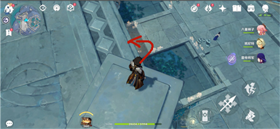 3、雕像就在下方的位置,能看到有微弱的光芒发出,我们跳下去。