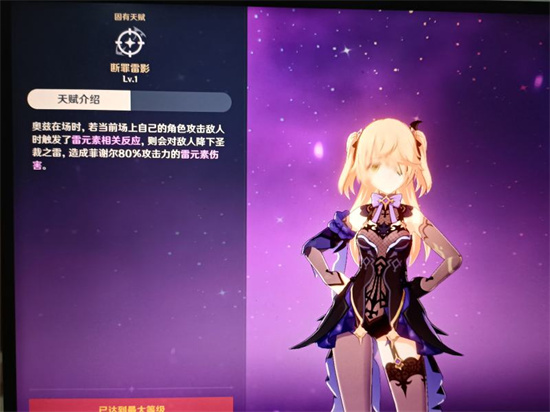 [天赋介绍]:菲谢尔以蓄力完成的瞄准射击命中奥兹时,奥兹会对附近敌人降下圣裁之雷,造成等同射击伤害152.7%的雷元素范围伤害。