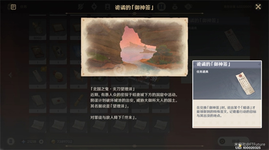 之后她就会给我们一个任务道具「诡谲的御神签」,打开后就能获得当天的提示。