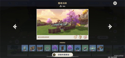 套装:白石温泉-「暖漫」*1、温泉屏风-「适分」*2、温泉外墙-「无越」*6、温泉墙板-「稳足」*1、温泉门厅-「避凉」*1、寂修石*1、涉浪石*1、温泉白石-「秘火」*1、「花咲初退红」*1、「春惜一斤染」*1、「薄红榴璃散千瓣」*2