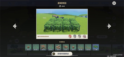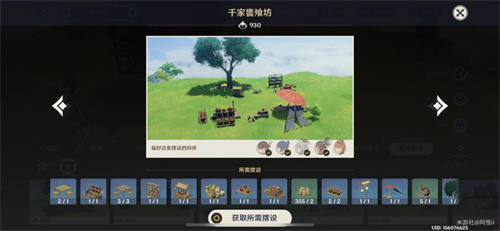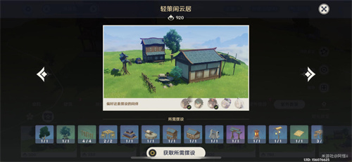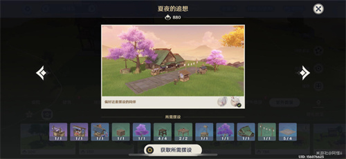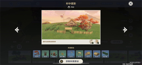 套装:「果农的勤俭」*6、晴空缯彩游鱼旗*1、厚壁「石胆」陶制水缸*1、御伽木「但饮」木桶*1、御伽木「近竹」围栏*10、御伽木「近竹」院门*1、稻妻筱屋-「野逸入心」*1、稻妻筱屋-「静度岁晏」*1、「纁漫雁来中」*1