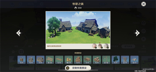套装:野外松木路灯*2、平整的木制长凳*2、硬顶水井-「但求虚澈」*1、简易货运拖车*1、宽大的松木长桌*1、沉甸甸的干草卷*1、有序叠放的杉木酒桶*1、交错放置的杉木货箱*1、袖珍松木小屋*1、古典乡间住宅*1、高大阁楼的乡间住宅*1、纤拳石*1、「归风的苍色」*1