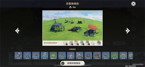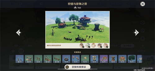 套装:丘丘图腾围栏*2、丘丘木制围栏*2、硬木兵戈架*1、杉木武器架*1、杉木置物架*1、丘丘双层警戒台*1、丘丘带角陶锅*1、丘丘弓箭标靶*1、丘丘简易草棚*1、丘丘螺旋瞭望塔*1、丘丘领袖大殿*1、丘丘前哨小屋*1、青衫问寒*1、青衫景铄*1、茁壮的萃华树*1、纤拳石*1、「归风的苍色」*1、伏青石*1