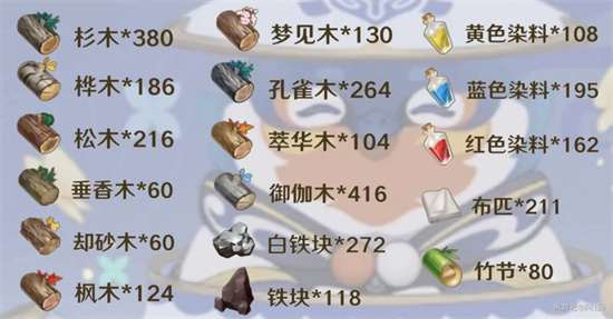 原神尘歌壶赠礼套装部分摆件可直接购买不需要制作,个别套装摆件重复,以下统计出最节省的材料做法: