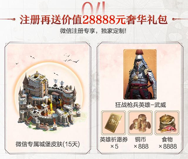 〓四、注册再送价值28888元奢华礼包[微信游戏专属]〓