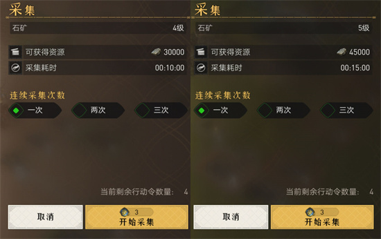 达到5级资源地挑战标准后立马行动,打下一个5级石头和5级木材,我们就可以开始采集,切忌在此之前采集低级资源地,那样会浪费不少资源。
