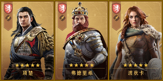 可通过首日卡包霸王降世招募,其中项楚也可通过招募豪礼保底领取,波狄卡和弗德里希可通过签到获取,获得穆英再换下波狄卡,整体开荒实力很强。