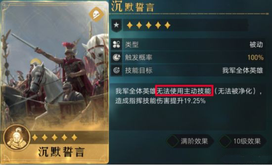 例如【沉默誓言】,这个技能对指挥剑来说就是神技,但若是装配在其他阵容当中,不但没有提升,反而起到反效果。