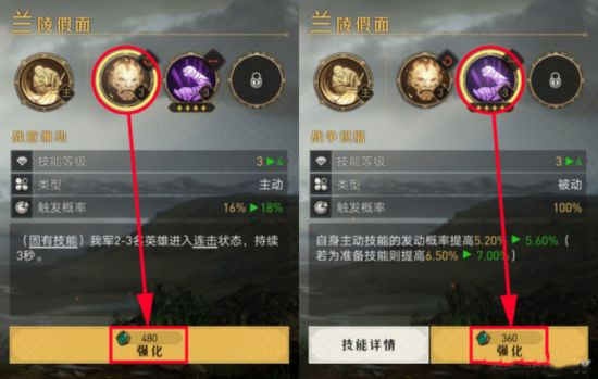 技能要选择适合武将,适合当前战斗场景的,而非品质越高就是越好。