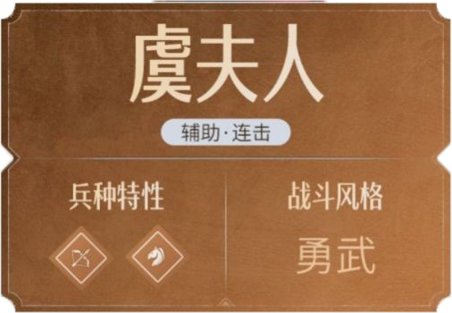 辅助虞夫人依靠固有技为全队提供连击状态,大幅提升普攻的伤害和追击技能的触发概率。