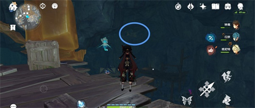 1、在传送点往右走,在悬崖边往前看,是视角对面有一个隐藏的小洞口,我们飞过去。