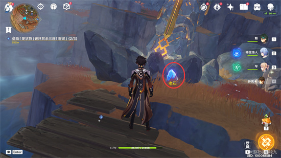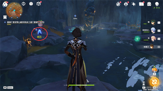 ※1号「磐键」旁边的这个矿石叫「老石」,可以用岩元素角色的元素战技破坏,是另一个世界任务的提交道具,一共要九个,层岩地区也只有九个!别忘记拿!