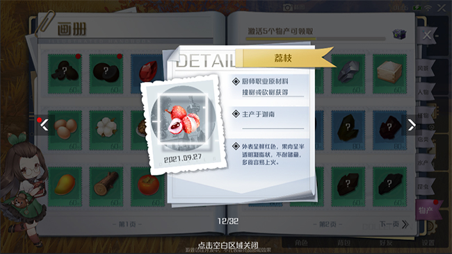 当我们寻找某种未被收录到地图资源点资源的时候,需要结合画册去完成资源点获取。以荔枝为例,首先在画册里面找到荔枝。