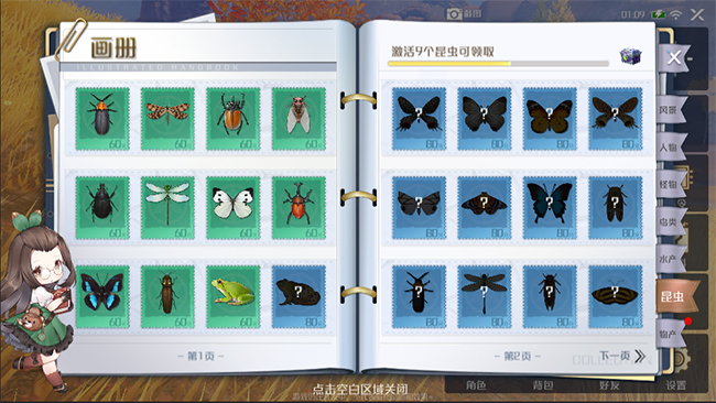 找到荔枝后就能解锁画册了,每找一种跟树有关资源时候记得仔细看,当你撞树的时候会掉下果实和相对应的昆虫哦,利用游戏里的捕碟网即可完成昆虫收集。