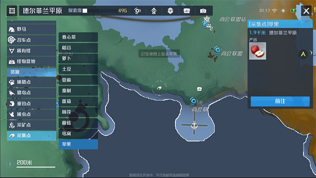 通过以上方法就能快速找到地图上不显示但你又需要的资源了,找到过后一定要记住资源特征或者资源点坐标,因为很多长在树上面的资源物是不被收录到地图中去的。