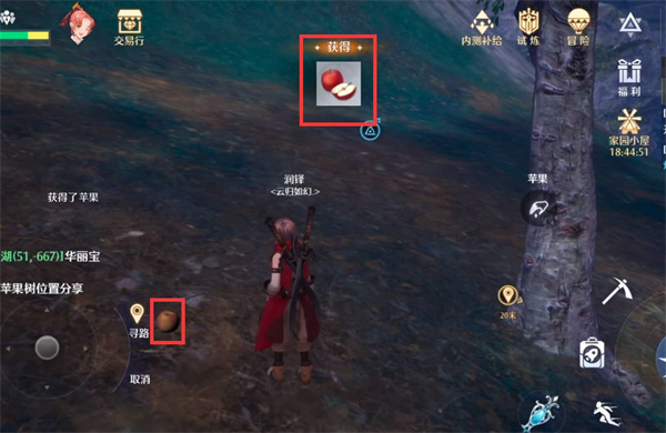 2、在该坐标位置找到苹果树后,就能够在地上捡到苹果。