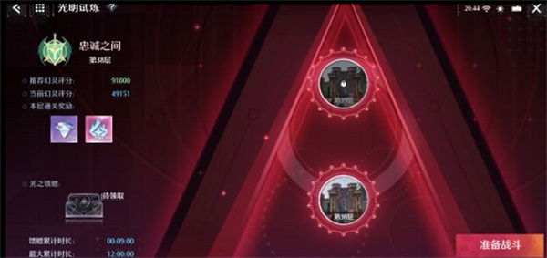 奖励:钻石、经验、幻灵抽奖徽章、声望等。(建议玩家带弓箭武器,带一个盾牌幻灵)光明塔层数越高,挂机的累积奖励将越高。