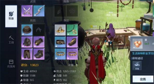 2、玩家还可以来到烹饪篝火设备处,找到NPC婉秋并与其对话,可以购买到小麦鸡蛋。