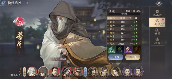 伙伴自身属性,可通过升级、升星、研习技能提升。