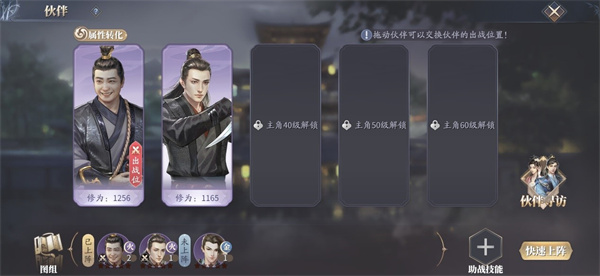 已上阵伙伴总属性的8%会转化为主角属性,角色达到60级可解锁5个上阵槽位。