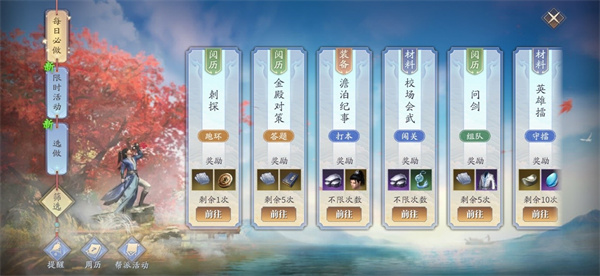 庆余年手游中的活动类型共分为每日必做,限时活动和选做三种,每种活动给予的奖励各不相同。玩家可以按需完成各种活动。