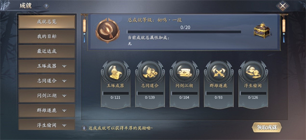 每达成一项成就,可获得成就对应的奖励,成就点积累到一定数量时,可以获得额外的属性加成。