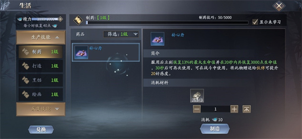 使用生产技能和采集技能将会消耗精力值,精力值每小时恢复40点。