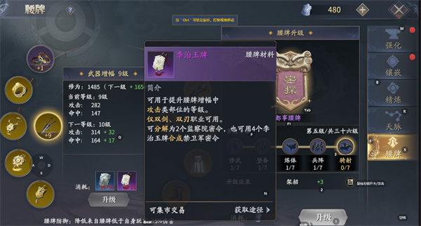 3、玉牌可提升装备增幅等级(不是每级都需要)