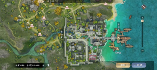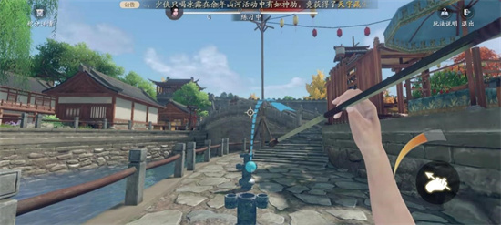 弹弓小游戏的入口位于澹州城中河边的圆形光圈,踩上去点击投壶按钮即可进入小游戏。