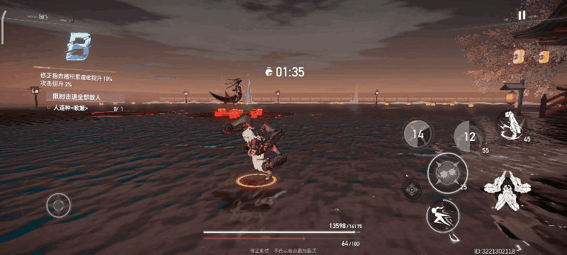 因为“护身盾”的原因,导致我们在不同状态时需要对不同部分进行攻击。一形态需要注意的问题在于“人”不停的释放声波,但一形态我们的主要攻击对象为“人”,因此攻击时需要我们频繁的闪避改变位置(容易红条)。二阶段时主要攻击为“鲸”,虽然二阶段的“鲸”威胁性小,但“人”的攻击更加频繁,范围也更大,因此注意人的动向即可。