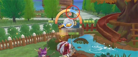 2、注意咯,当钓到稀有品质以上的鱼时,收线的力量要在合适的范围内(蓝色范围),才能把鱼缓缓拉出水面。
