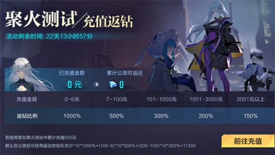 最后因为本次测试为计费删档测试,所以小伙伴在测试中的充值,将在公测中以150%的更高比例返还钻石,首档最高更可返还1000%!