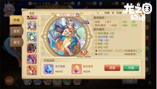 从第7级开始,升级UR龙晶除了需要龙之碎晶(升7-12级)或龙之结晶(升13-18级),还需要用到珍稀的融合源流。
