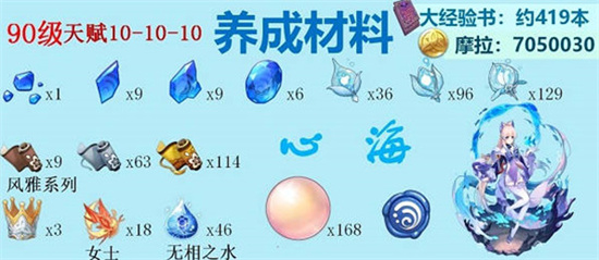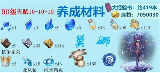莫娜是一名以辅助见长的水系五星角色,其突破需要抗争系列天赋书、花蜜、北风之环等材料。
