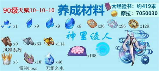 神里绫人是一位周期输出型角色,需要刀镡、绯樱绣球、风雅系列天赋书、无相之水掉落的排异之露等突破材料。