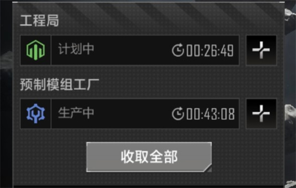 每个动员令或者预制模组都能加速五分钟。