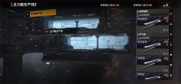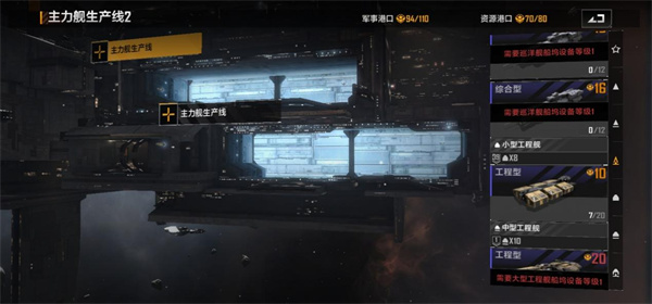 4、 最后还有主力舰生产线,生产线的多少决定了能同时生产多少艘战舰,更多的生产线也就意味着在相同的时间内,可以生产出更多的战舰,提高生产效率。通过基地建设,可以逐渐解锁更多的生产线。