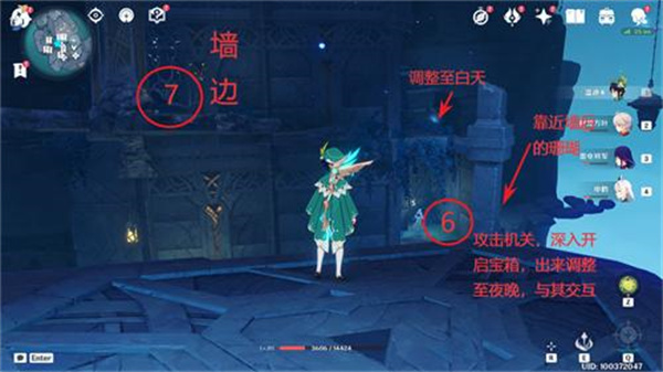 6号,先在夜晚模式使用珊瑚,调整至白天,进入攻击机关