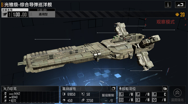 基础型号为通用型,在某种程度上可以和奇美拉、艾奥级并列,虽然总体输出能力上逊色于奇美拉和艾奥,但出色的防空能力是其他巡洋所不具备的,2架防空无人机与相关的技术强化使得该巡洋防空能力高出其他舰船一截,虽然目前的防空机制还有诸多问题,但需要防空的场合,光锥级是不可或缺的存在;另外,其子型号区域防空型防空效果更为出色!