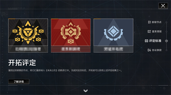 签署《节点恢复协议》的开拓者,将以星系占有率的排名以及星门的归属作为最终的评定标准。但开拓者一旦签署了《互助协议》,将依照新的评定标准,即是否成功协助星系势力守护星门的控制权以及所有签约势力的共同占有率,作为最终胜利评定的主要方式。