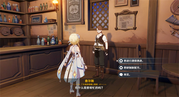 和查尔斯对话并选择想研制新配方。研究配方是原神活动曲生酌微梦活动的一项内容。该活动是主角扮演酒保角色,给顾客们调制饮品,而饮品配方有些是需要自己尝试配置解锁的。