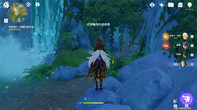 8、之后再回去和若心对话,根据任务指引来到瀑布,瀑布右边有一个入口洞穴。