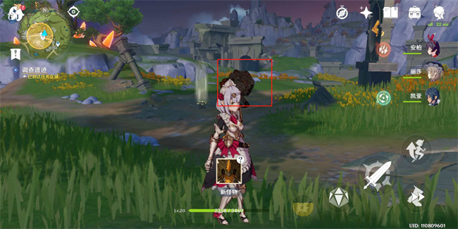 2、接着我们就去调查遗迹,到达任务指向的地点,击杀遗迹守卫,杀死守卫之后,即可点击残缺的文字查看圆盘,任务要求我们去寻找奇怪的石头。