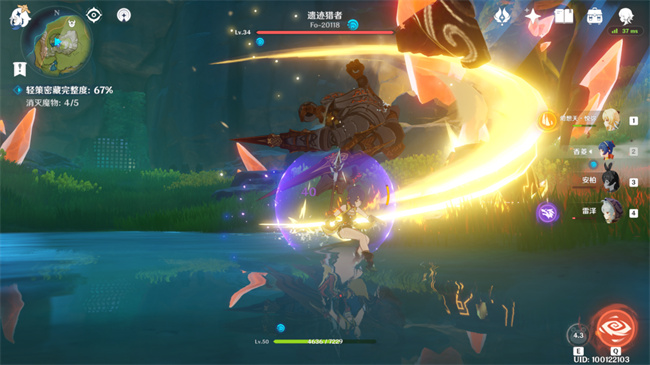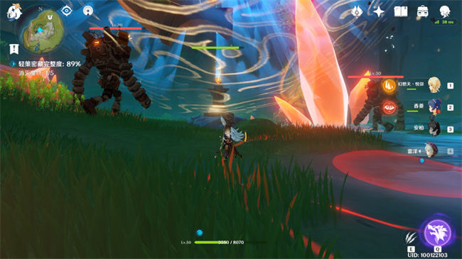此时会有遗迹守卫攻击水晶,需要保护水晶,一共三波,并且头上会掉下岩石。(可利用岩石与被元素附着的遗迹守卫造成结晶反应,保护自己)