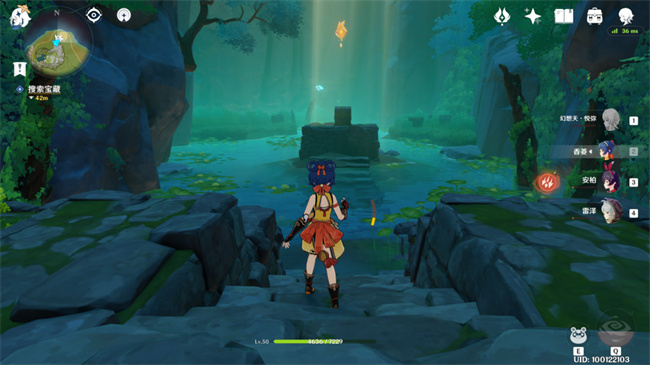 都击败以后,派蒙会让我们找找宝藏,我们继续往里面走。