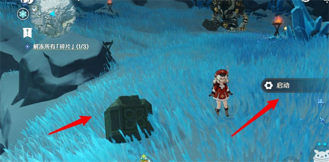 3、第四个机关被冰起来了,我们需要找到深赤之石才可以将冰块击碎。